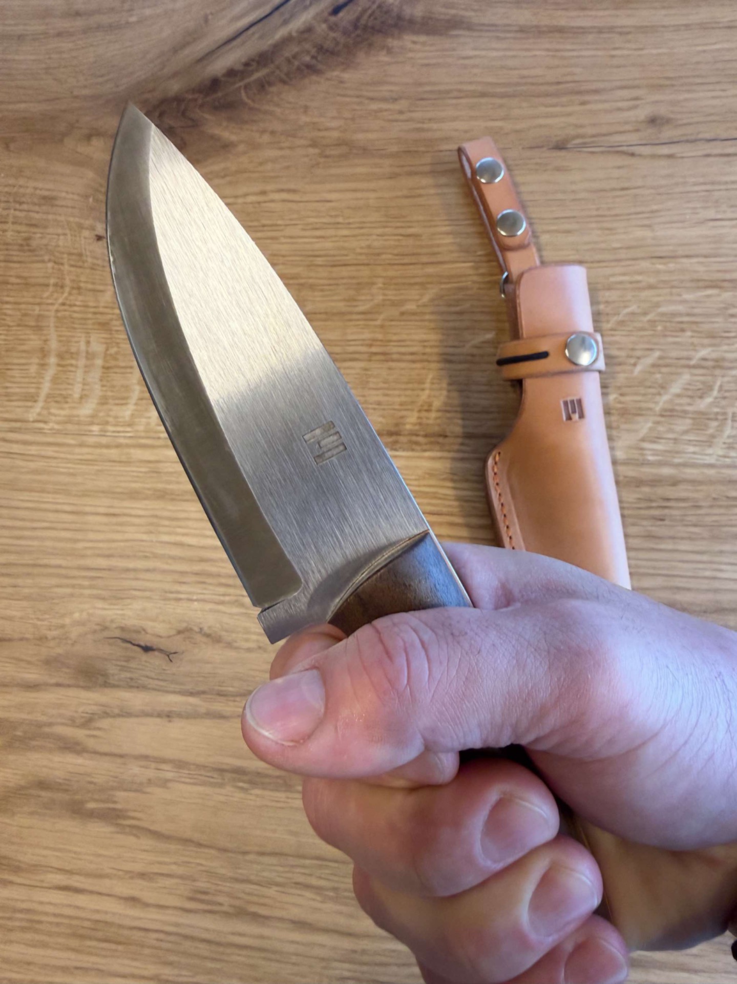 Nový typ nože s názvem Kodiak po největším medvědovi Aljašky a stejně tak je přirovnání k tomuto noži protože se jedná o jeden s mých největších modelů. Nůž je velmi dobře ergonomicky tvarovaný, jak na úchop v ruce, tak jeho čepel, která je vhodná na spoustu věcí. Čepel je velká, široká a silná, vhodná na potraviny ale zvládne i hrubší zacházení třeba "kácet stromy" :), protože má nižší výbrus zakončený fasetou ostrou jako břitva, že s tím můžete holit. :)